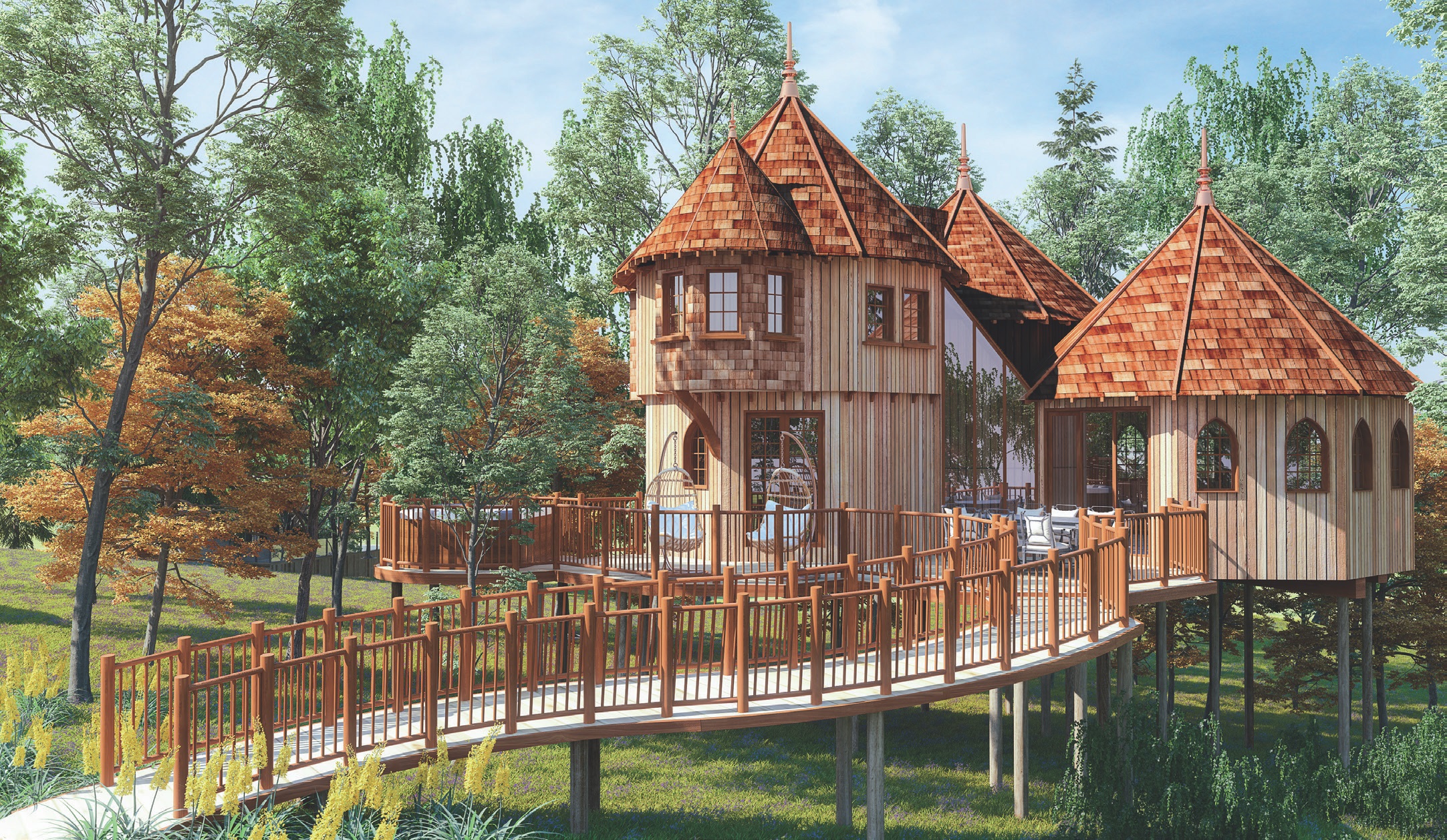 COMPLEMENTING ITS LOCATION, this stunning treehouse accommodation with accessible pathway is a feature at Shorefield Country Park in the New Forest.